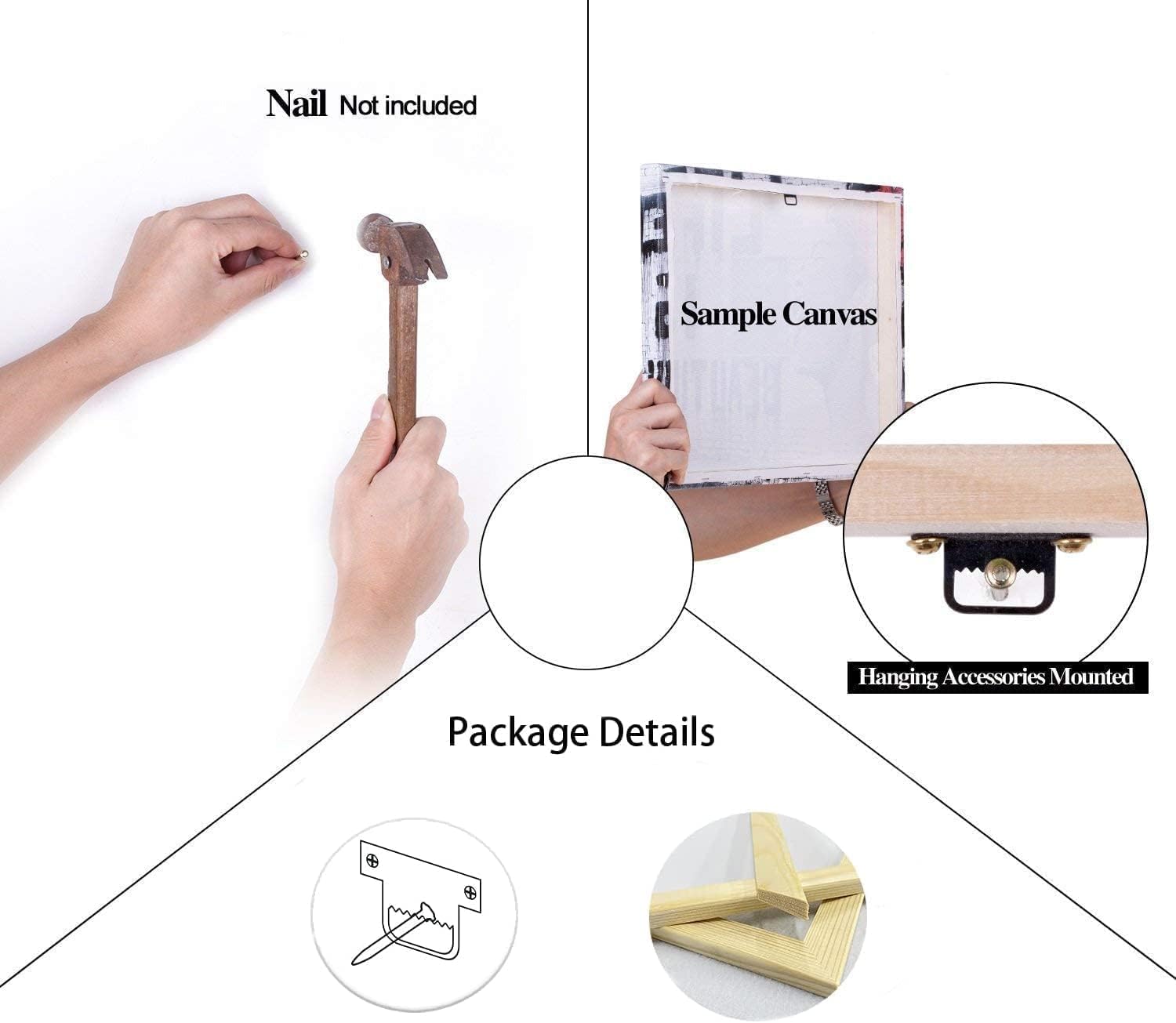 - Canvas wall art framed,already mounted,Each panel has a black hook already mounted on the wooden bar for easy to hang