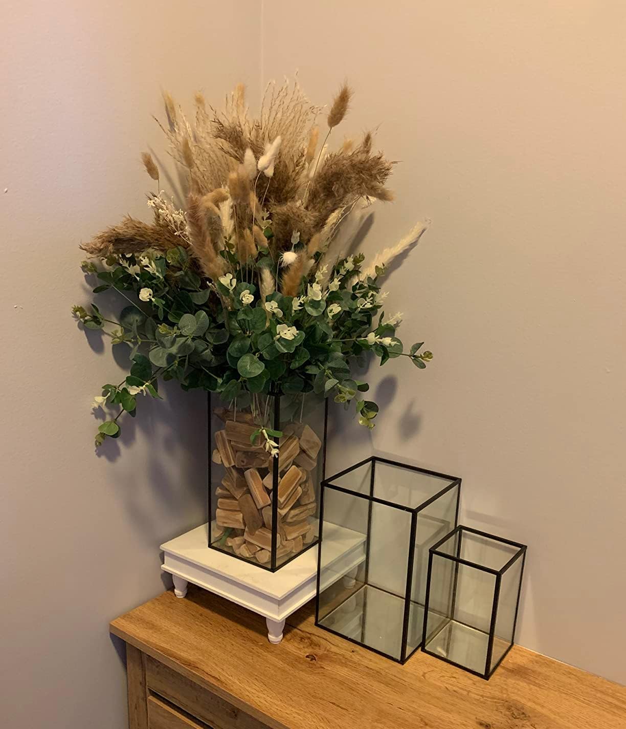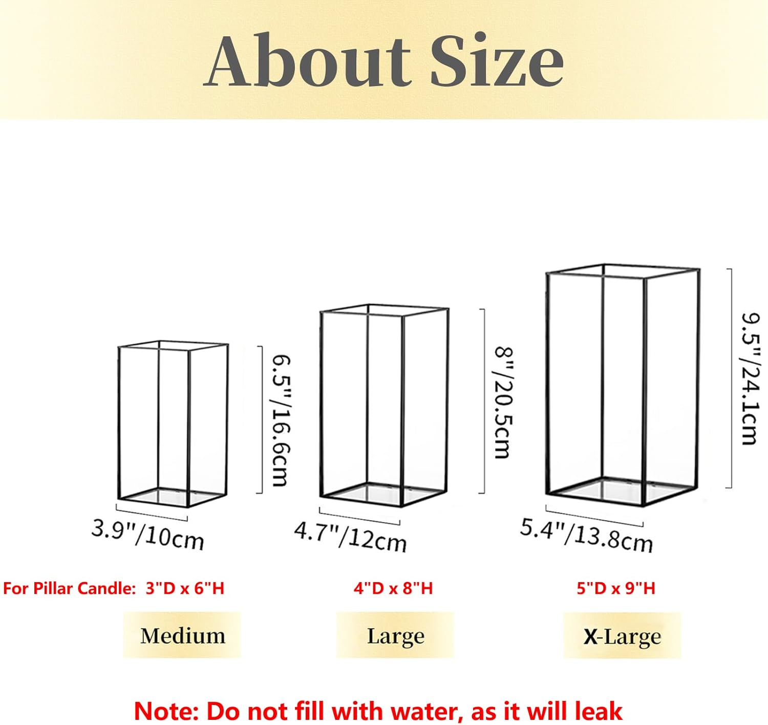 - 3 Different Sizes -- The square candle holders are 3 different sizes, which is so much more interesting to look at. They can meet your different needs. It can not only hold pillar candles, electronic candles or tea light candles, etc., but also some dried flowers, colored stones, fairy lights, makeup brushes or pencils.