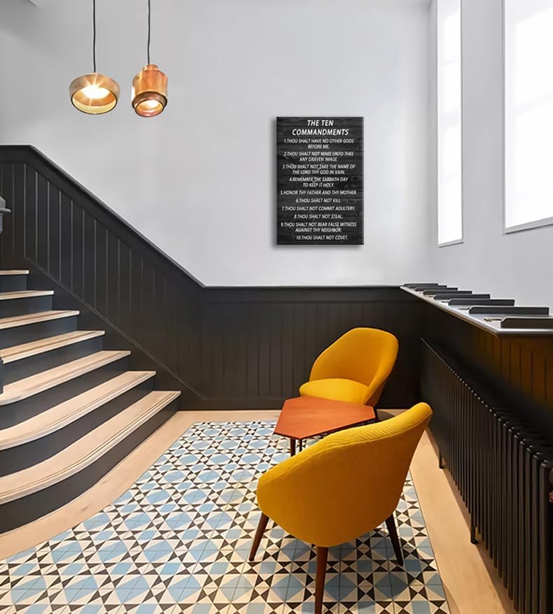 The Ten Commandments Inspirational Canvas Wall Art Motivational Pictures Christian Religion Poster Print Modern Inspiring Painting Framed Artwork for Office Living Room Wall Decor [24''Wx 36''H]