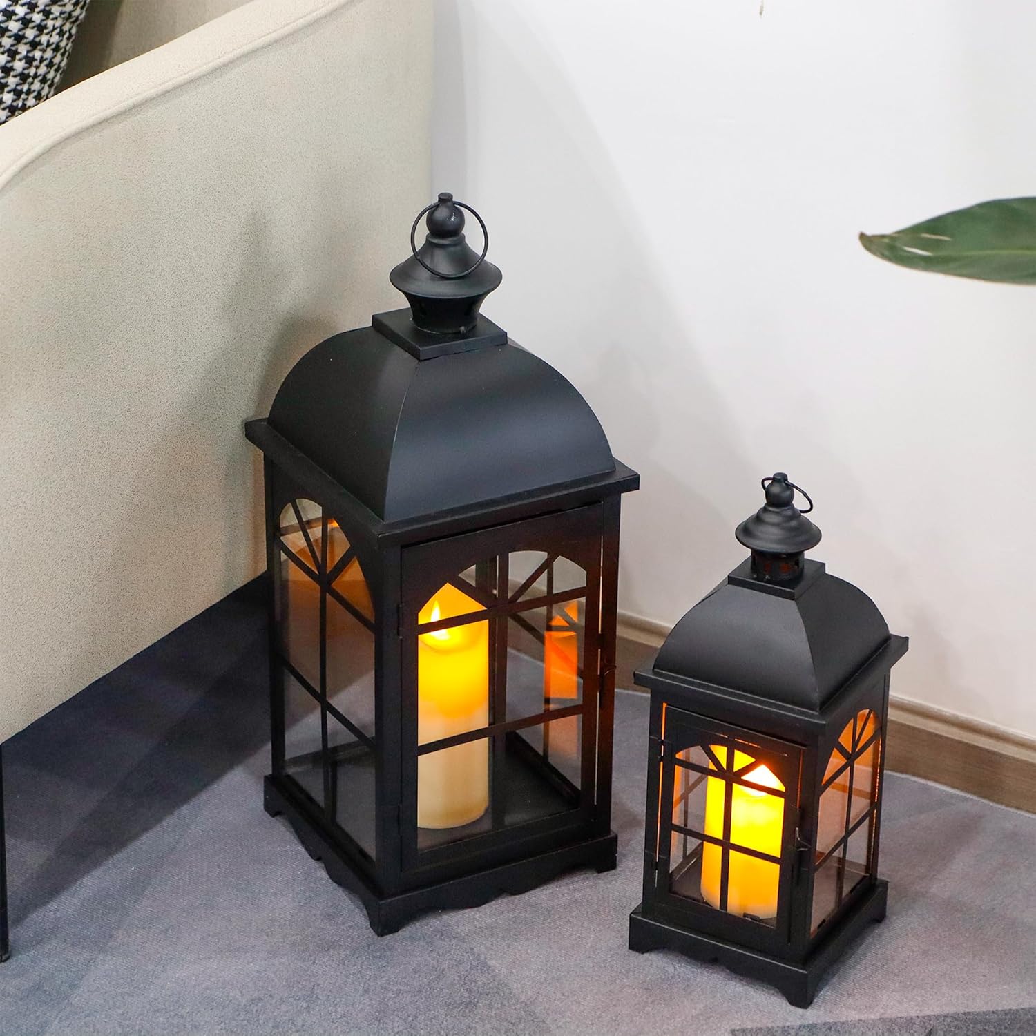 - 【Safe & Windproof Lighting】 - Featuring durable tempered glass, these candle lanterns protect flames from breezes, making them ideal for outdoor lanterns. Use flameless LED candles for worry-free ambiance or traditional candles for a flickering glow. Their secure design ensures safety for patios, pathways, or farmhouse-style dining tables.