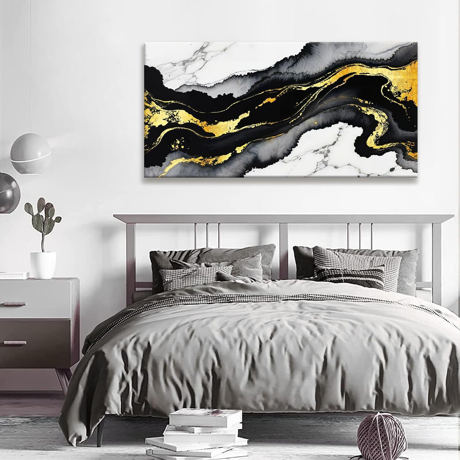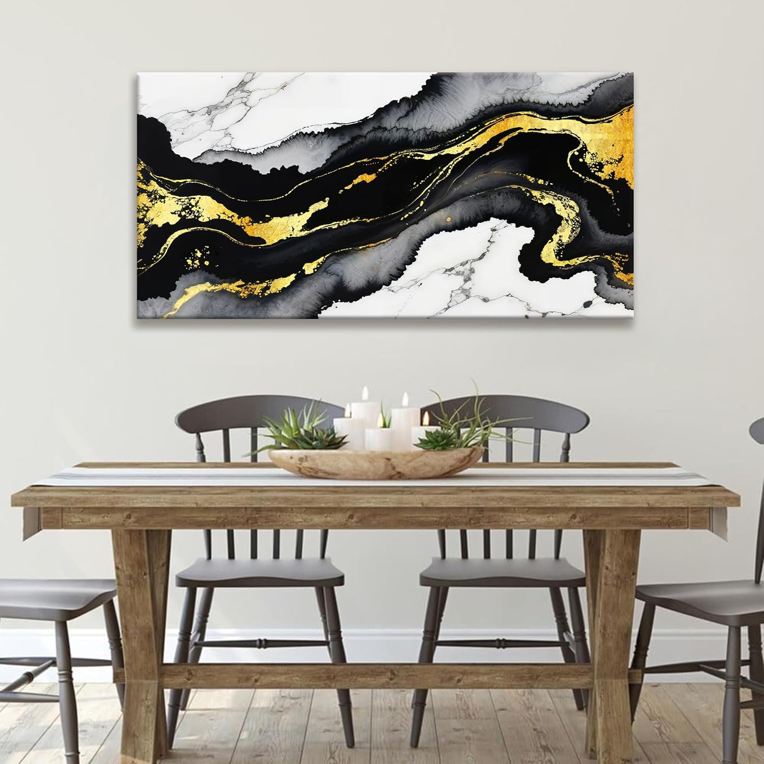 TAIJXAGSG Abstract Black And Gold Wall Art For Living Room Artwork Canvas Art Wall Decor Marble Texture Modern Canvas Prints Pictures Abstract Wall Decor For Home Hotel Decoration 24x48 Inch